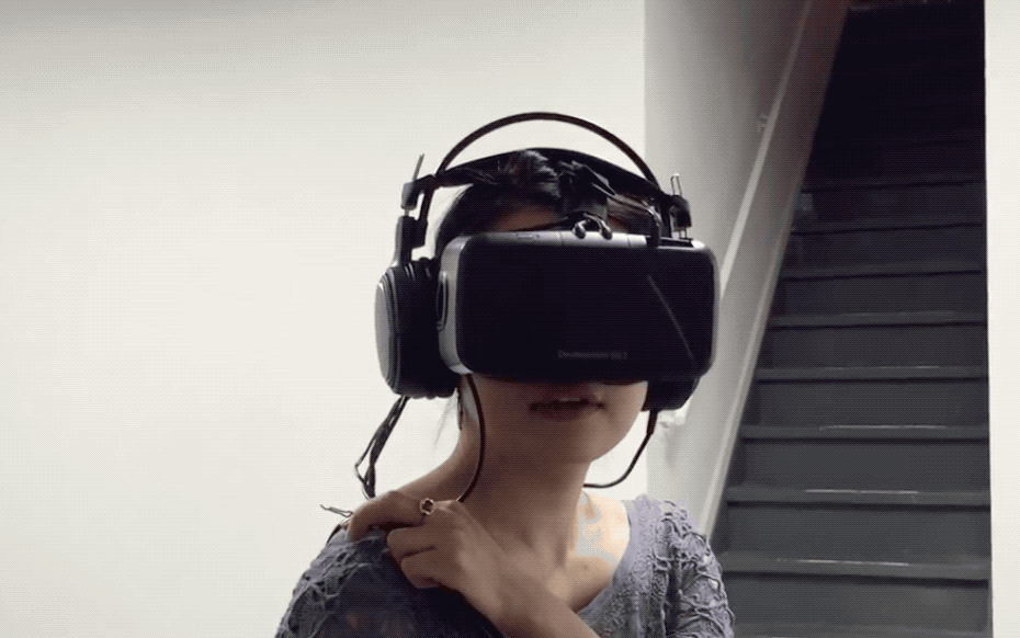 Nhung cuts through a stack of post-its as a sign of affection